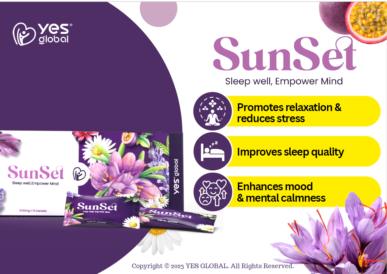 SunSet is a nighttime wellness supplement designed to promote relaxation, reduce stress, improve sleep quality, enhance mood, and support mental calmness. It combines natural plant extracts to help you fall asleep naturally and wake up refreshed, supporting overall nighttime wellness and recovery.